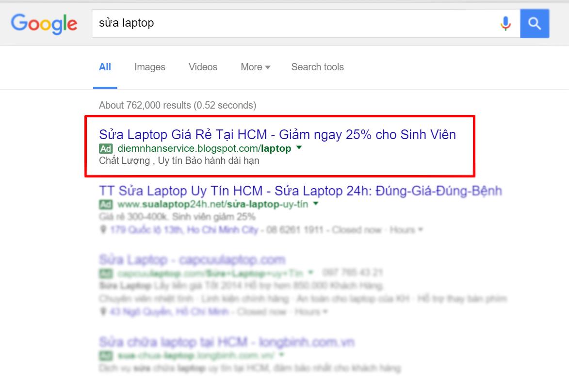 Hình ảnh chiến dịch quảng cáo từ khóa Google top 01 của Adsmax.vn